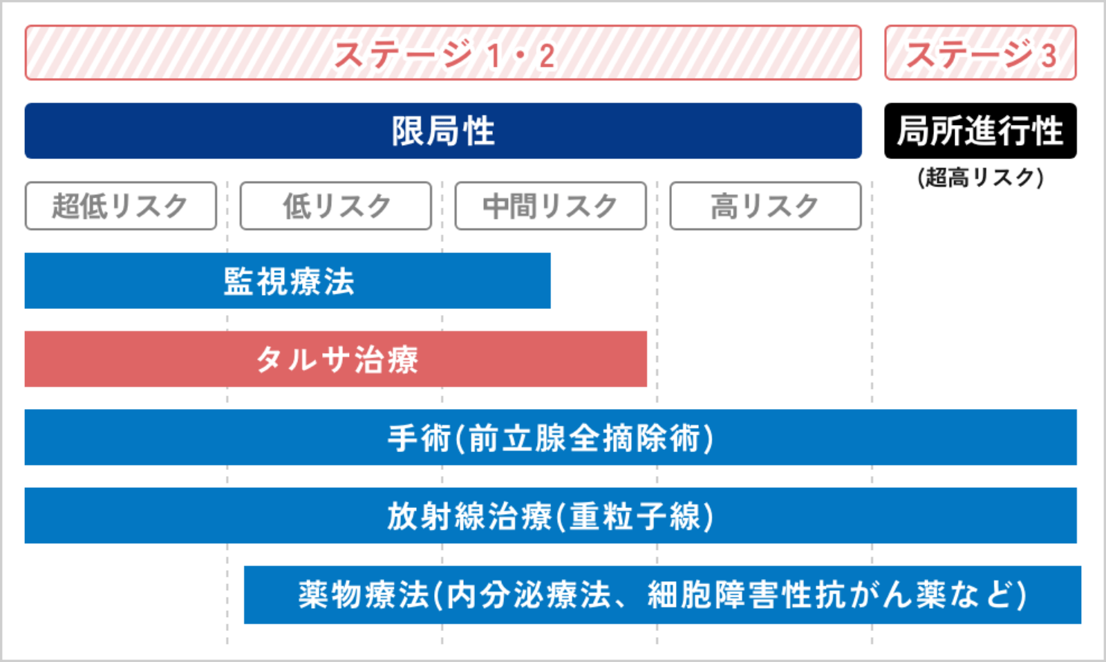 タルサ治療は、前立腺がんステージ1・2までの方が適応となります。